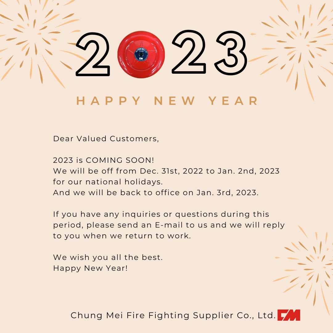 ![]() 2023 is coming soon! Our office will be temporarily closed from Dec. 31st, 2022 to Jan. 2nd, 2023 If you have any inquiries or questions during this period, please send an E-mail to us and we will reply to you when we return to work. |