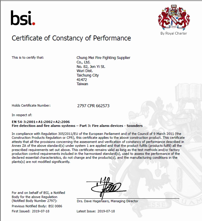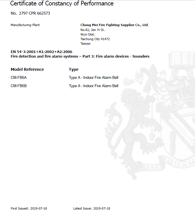CM-FB6B Fire Alarm Bell 6" has launched and certified BSI EN54-3 Certificate.
