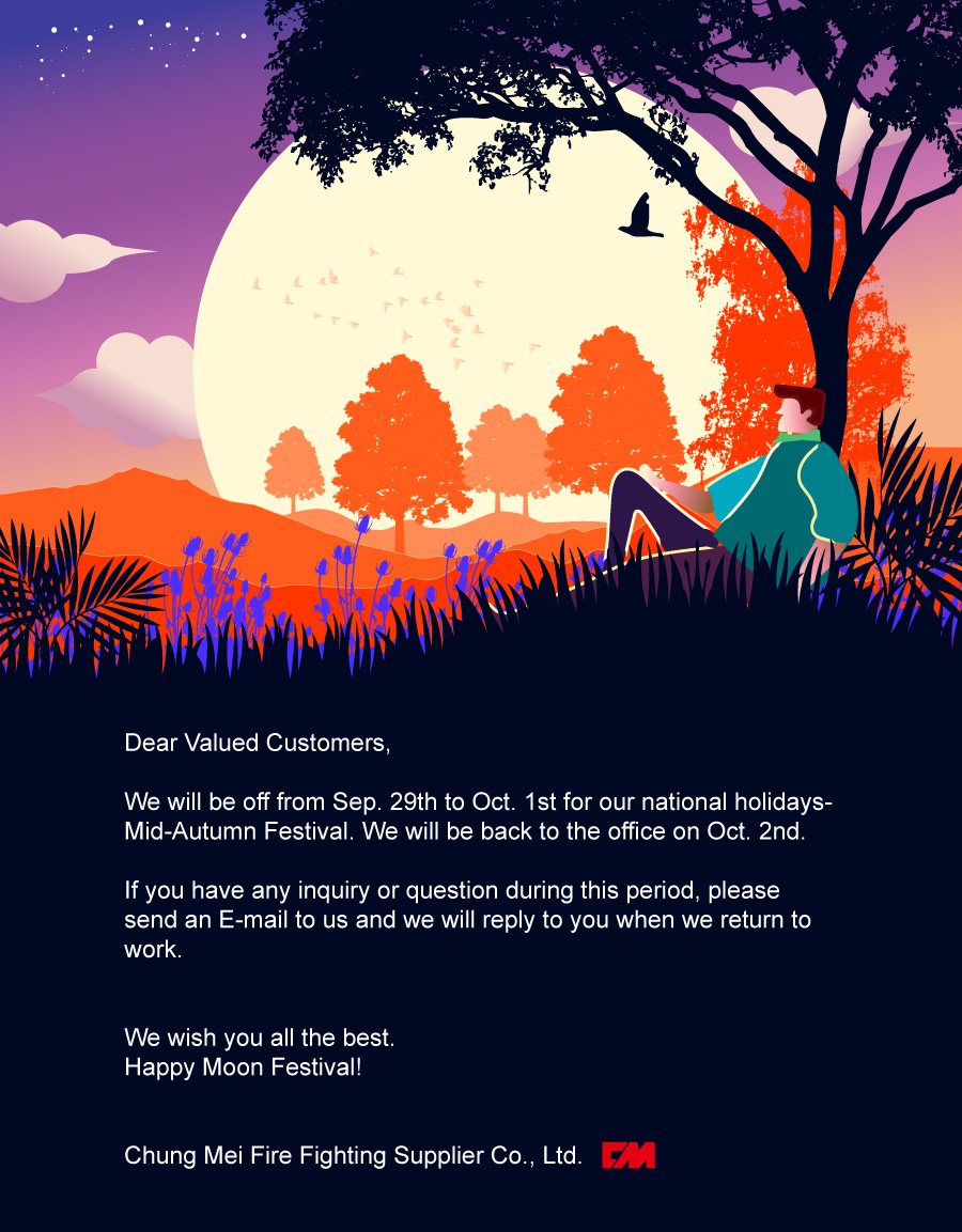 ![]() Mid-Autumn Festival is coming soon! Our office will be temporarily closed from Sep. 29th to Oct. 1st. If you have any inquiries or questions during this period, please send an E-mail to us and we will reply to you when we return to work. HAPPY MOON FESTIVAL! |