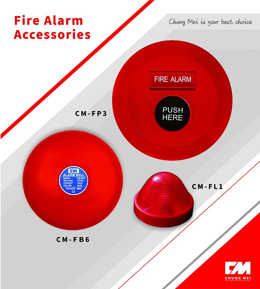 | What is Fire Alarm Accessories? Fire alarm accessories play an indispensable role in the fire alarm system, and are normally used with fire alarm control panel and fire detectors. The key function of fire alarm accessories is to alert people via vision or auditory sense. When a fire alarm occurs, people can understand the situation on the scene through the warning sound and light emitted by the fire alarm accessories immediately, and thus escape from the fire scene as soon as possible. The fire alarm accessories are mainly divided into four parts: 1. Warning sound: The equipment includes fire alarm bell and electronic bell. When the fire detectors detect a fire, the alarm bell will ring loudly to warn people to escape from the fire scene at early stage. 2. Warning light: The equipment includes fire indicating lamp and remote indicating lamp. When the detectors detect a fire, the fire indicating lamp will be blinking to alert people to escape, and remote indicating lamp will be light on to make people know where the fire originated. 3. Emergency: The equipment includes fire manual call point and fire manual station. When people find or see the fire happening, they can quickly trigger the emergency equipment, such as fire manual call point, fire alarm manual call point or fire manual station, to alert other people to escape from the fire scene as soon as possible. 4. The other parts: The test equipment includes test device of smoke & heat detector and smoke detector tester. The test equipment is used to test the function of the detector for making sure that the detector can work normally. A smoke detector tester can quickly test whether the smoke detector is functioning well. When the installation position of the detector is high on the ceiling or high position on the wall, people can use the test device of smoke and heat detector to reach it for testing the function of the detectors. If you are interested in our fire alarm products, please feel free to contact us. Chung Mei team is professional and experienced in this field. We will be very happy to assist you. ![]() |